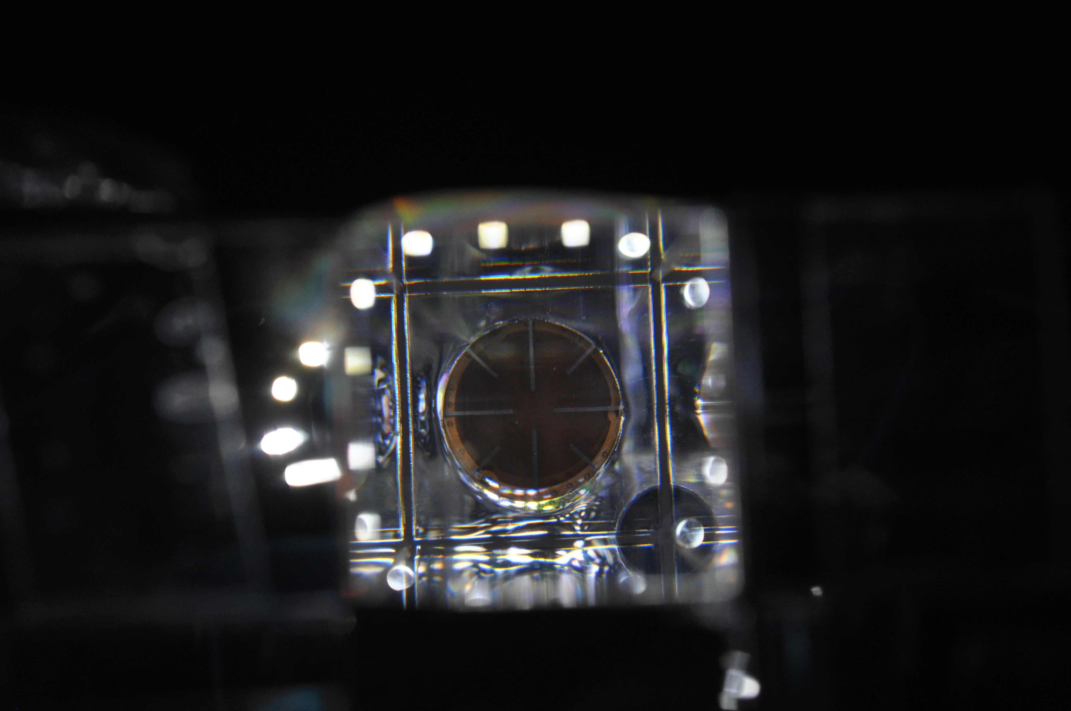Coupling between crystal and APDs after 7 months. Picture taken without alignment-tool. Some very small foreign objects visible. |